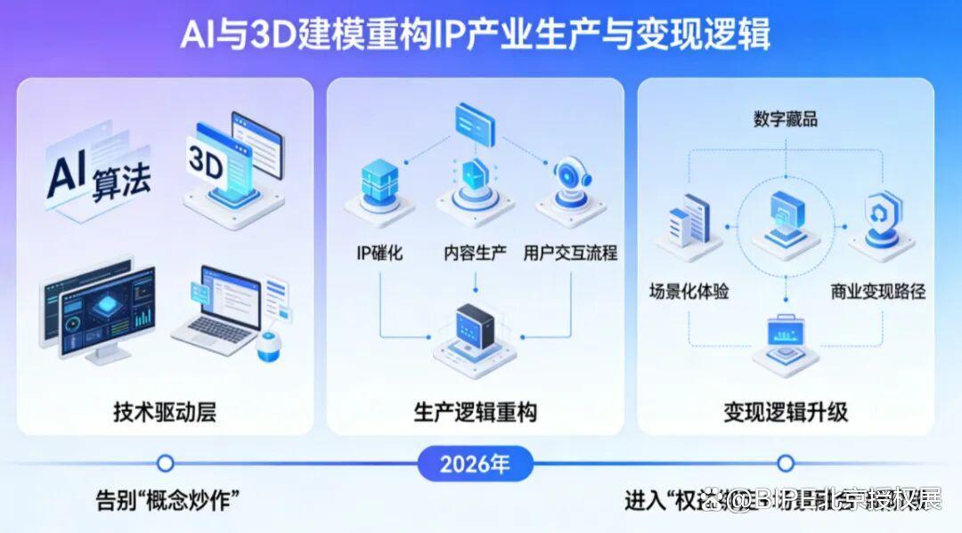 AI、3D建模、虚拟交互等技术,正重构IP产业生产与变现逻辑。2026年,数字IP告别“概念炒作”,进入“权益绑定+场景融合”新阶段。